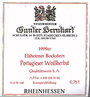 It was made by Gunter Bernhart and sold by Stefans Franke's father. I enjoyed it enormously with some sausages and grilled tomatoes. Clean, off dry and refreshing. Thanks Stefan!