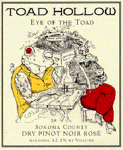 "world-class wine at affordable prices". Their nicknames are Dr Toad and The Dancing Badger and this label from a pink wine shows them sitting in Toad Hollow enjoying a glass of their wine Read their story and about their
