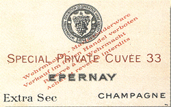 The worlds oldest wine society - The International Exhibition Co-Operative Wine Society 1874 - has imported its own label Champagne (sourced from Alfred Gratien since 1907) under the Special Private Cuvee 33 label. In the second world war the stocks reserved for the Society was bought up by the German army during the Occupation. They asked to keep the English label as it was considered a mark of quality, overprinting it in German.