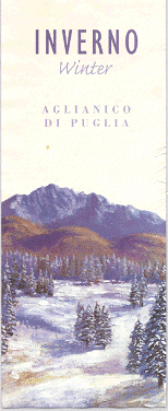 Aglianico is a traditional grape native to Puglia in southern Italy where is produces a full-bodied wine with black-fruit character and firm tannins. The makers recommend it for cold winter days (Inverno is Italian for winter), but also suggest it as an ideal match for fine dark chocolate.