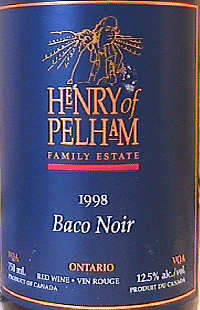 Baco Noir is a hybrid. A hybrid is a cross between vitis vinifera and native American vines. American vines produce wines with a distinctive flavour known as foxy - the taste reminds you of a wet dog. The Baco Noir hybrid loses the foxy taste and makes a wine so good that the French planted large amounts in Burgundy after phylloxera. In more recent years it has been replaced by more traditional varieties. But in Canada it suits the climate and makes a powerful black soft wine that I really enjoy. One side effect of the wine is to dye your tongue black. A small price to pay for such an excellent wine.