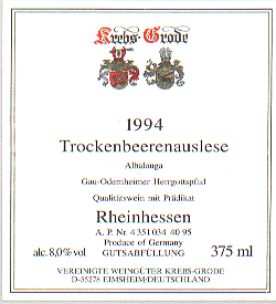 Albalonga is a Riesling-Sylvaner cross planted in Germany's Rheinhessen area. It is susceptible to Botrytis, of which this wine is a result. Trockenbeerenauslese means shrivelled dried 'trocken' beeren 'berries' especially selected 'auslese'.