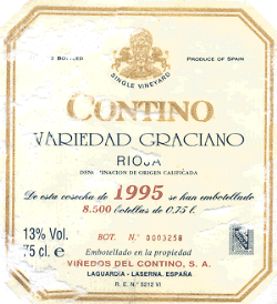 Graciano is an aromatic grape that used to be one of the important constituents of the blend that makes Rioja. But its low yield and susceptibility to disease means only a few acres are left. This label is from an unusual Graciano varietal wine form Rioja. Also grown in California under the name Xeres.